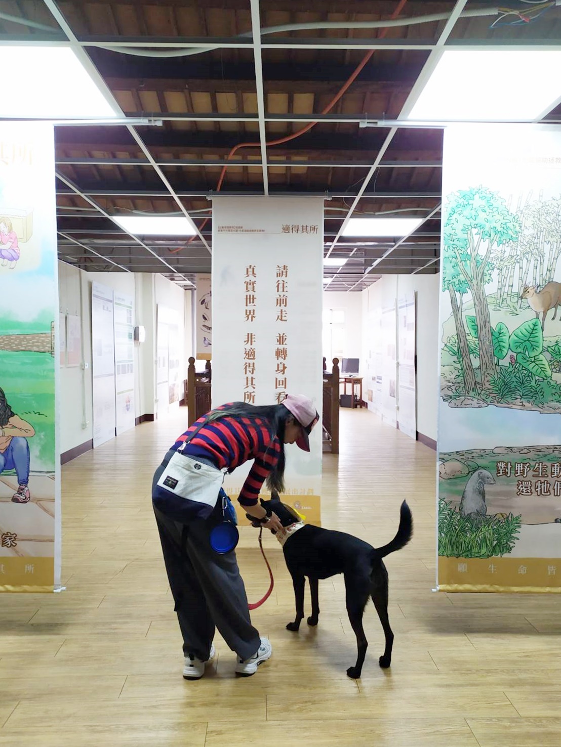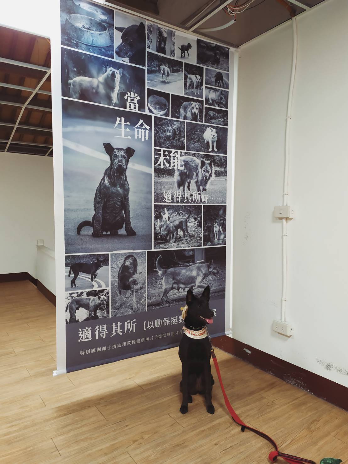 而正在和主人環島的安安也成為適得其所展覽裡第一隻自己獨自上樓、看展、聽展的小狗狗,