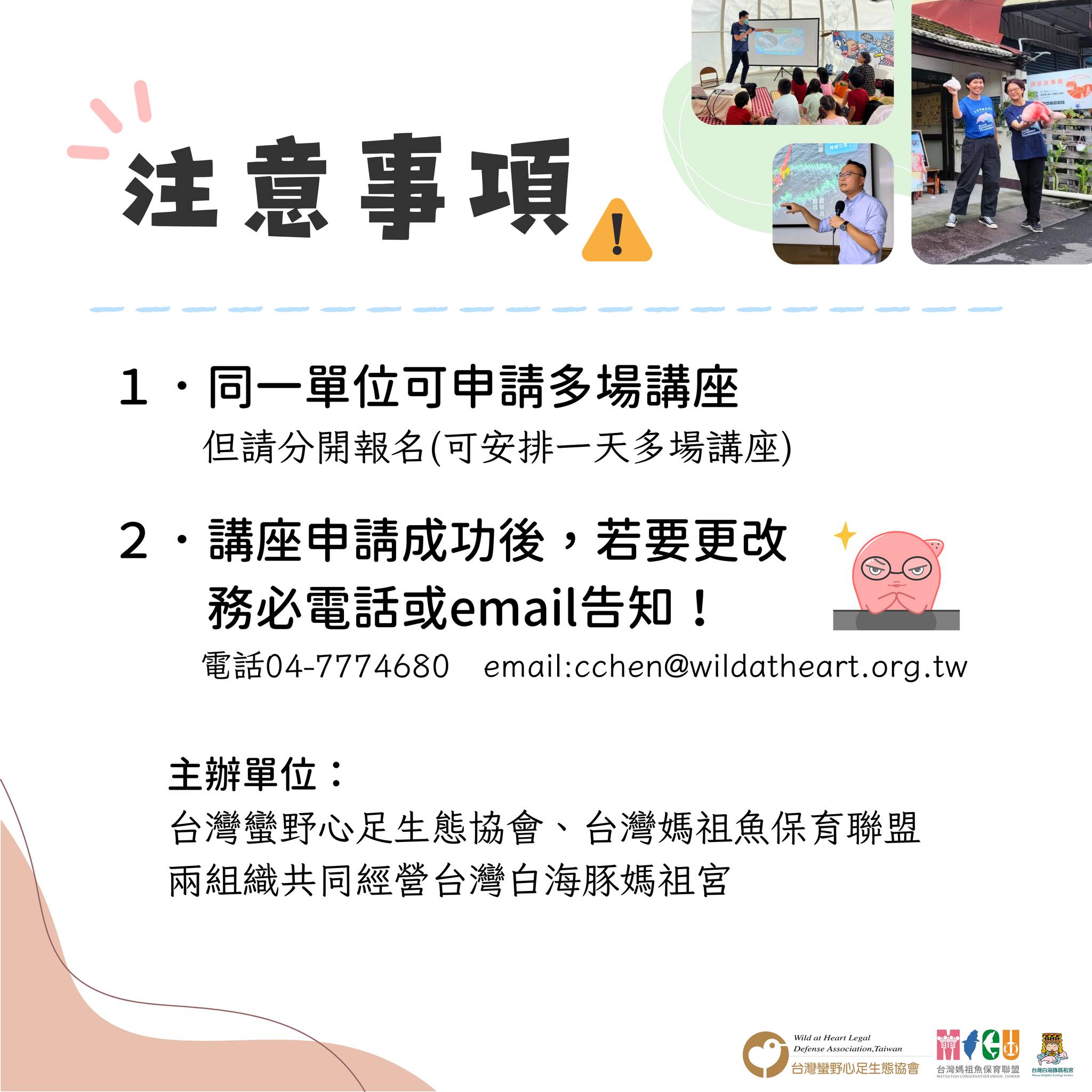 🎉主辦單位:台灣蠻野心足生態協會以及台灣媽祖魚保育聯盟