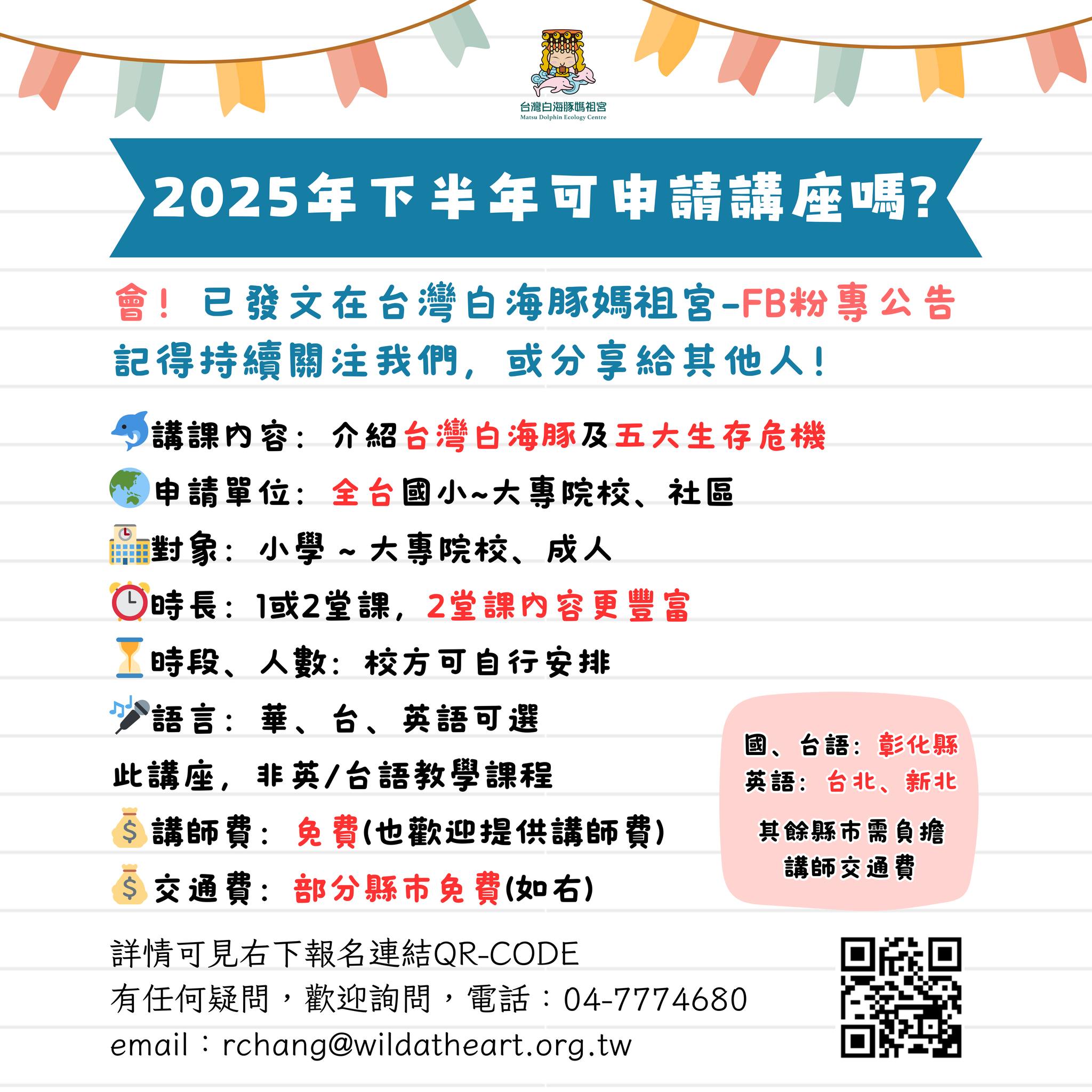 🥳2025下半年台灣白海豚外送平台-講座開始報名!https://user304224.pse.is/8244xf